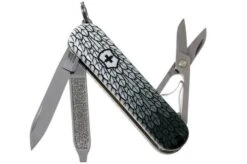 The Victorinox Classic is the most famous and smallest pocket knife made by the Swiss brand Victorinox. The Classic was designed to combine compactness and versatility. With only 58 mm (ex. the keychain) this pocket knife is one of the smallest pocket knives in our range. Because of the compact size and the low weight this pocket knife is easy to take with you. For instance on your bunch of keys with the key ring. Don’t underestimate this Swiss knife! Despite its size this pocket knife has many functional qualities for a very affordable price. This pocket knife is enhanced with all tools you need in daily life. The Classic is enhanced with a knife, nail file which can also be used as screwdriver, scissors, tweezers, tooth pick and key ring.