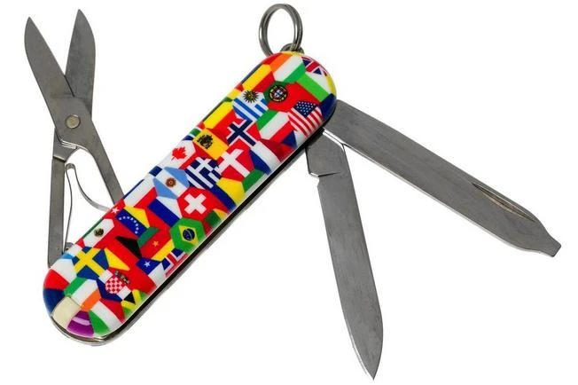 The Victorinox Classic is the most famous and smallest pocket knife made by the Swiss brand Victorinox. The Classic was designed to combine compactness and versatility. With only 58 mm (excl. the keychain) this pocket knife is one of the smallest pocket knives in our range. Because of the compact size and the low weight this pocket knife is easy to take with you. For instance on your bunch of keys with the key ring. Don’t underestimate this Swiss knife! Despite its size this pocket knife has many functional qualities for a very affordable price. This pocket knife is enhanced with all tools you need in daily life. The Classic is enhanced with a knife, nail file which can also be used as screwdriver, scissors, tweezers, tooth pick and key ring.