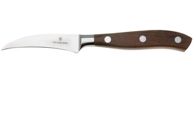 The Victorinox Grand Maître Shaping Knife 7.7300.08G, maple wood, turning knife, 8 cm is a small, lightweight and razorsharp knife. It’s great for small tasks in the kitchen. The curved blade makes the knife ideal for peeling potatoes, cutting garnishes or peeling round fruit and vegetables.