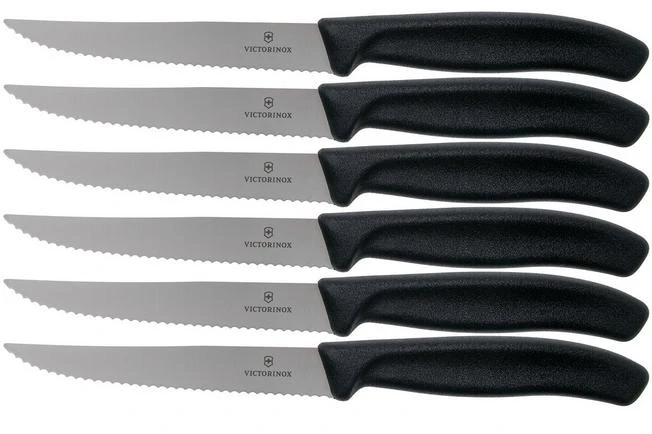 The Victorinox SwissClassic 6-piece steak knife set is a practical set of steak knives. Because of the materials used the steak knives are nice and light-weight and incredibly versatile.