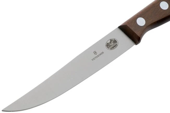 The knives in this Victorinox Wood steak knife set are enhanced with a razor-sharp edge. As such the knife will easily cut through a steak, but it is also perfect for other food. The ergonomic scales offer enough grip. This product is a set of two.